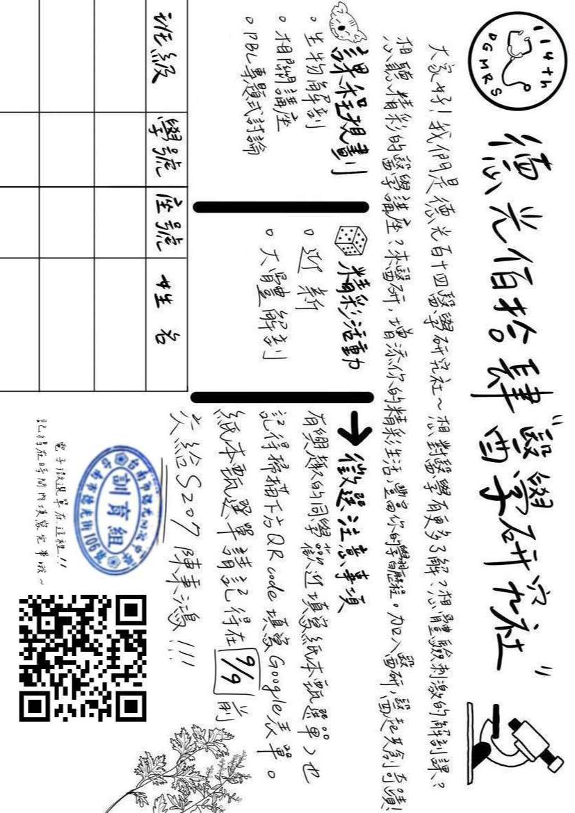 指定性社團 熱情招生中 8/31~9/5 招募宣傳 9/6~9/12 各社甄選