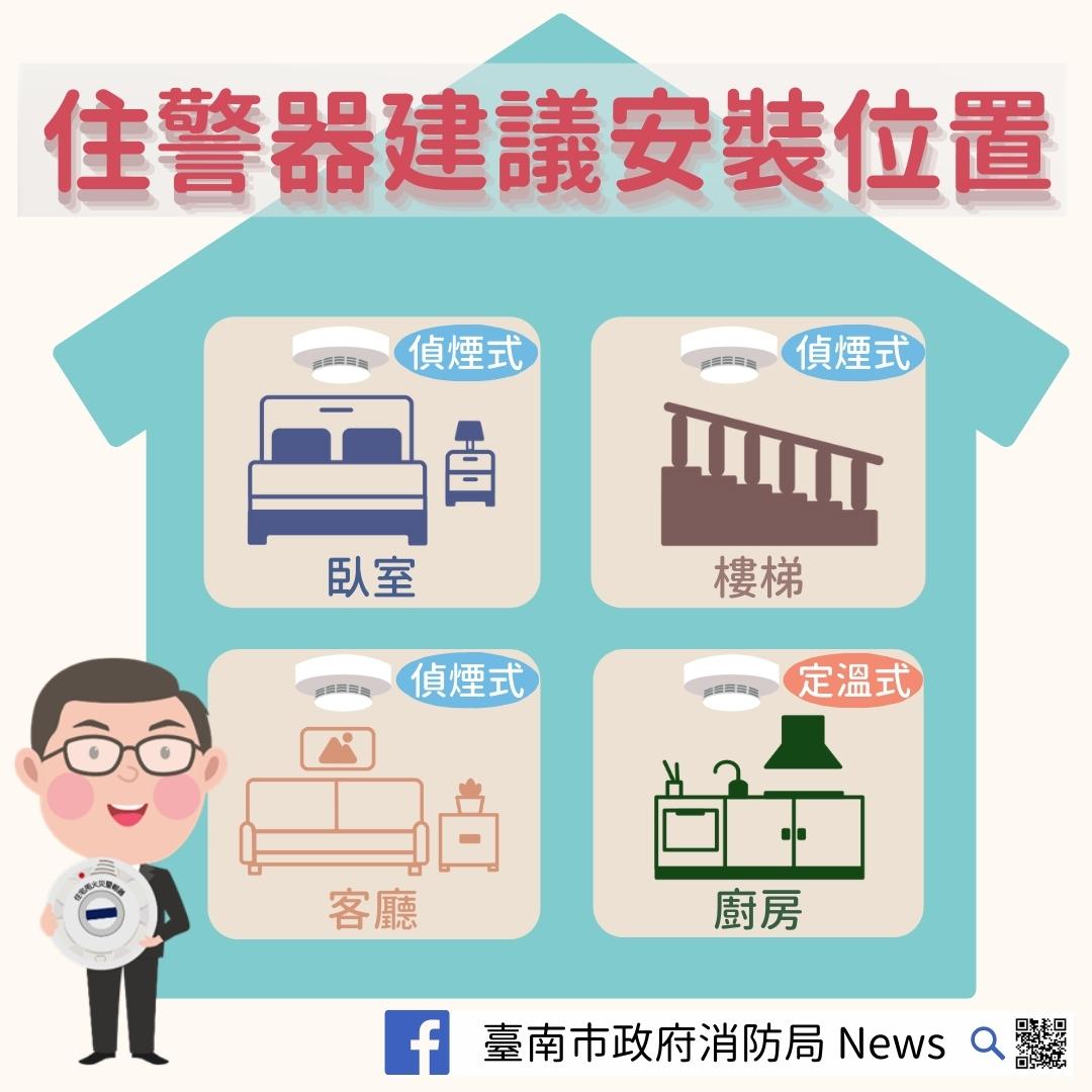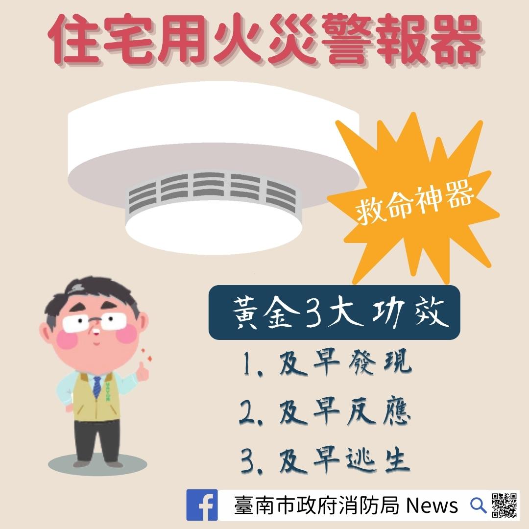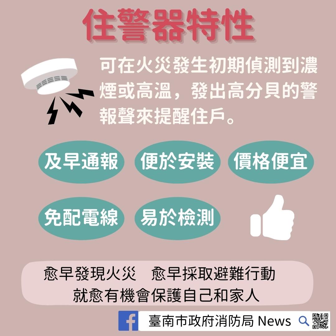 二、設置住警器能偵知火災及發出警報聲響的功能,輔助民眾第一時間發現火災,並立即採取逃生行動,提升保護全家人及自身的生命安全機會。
