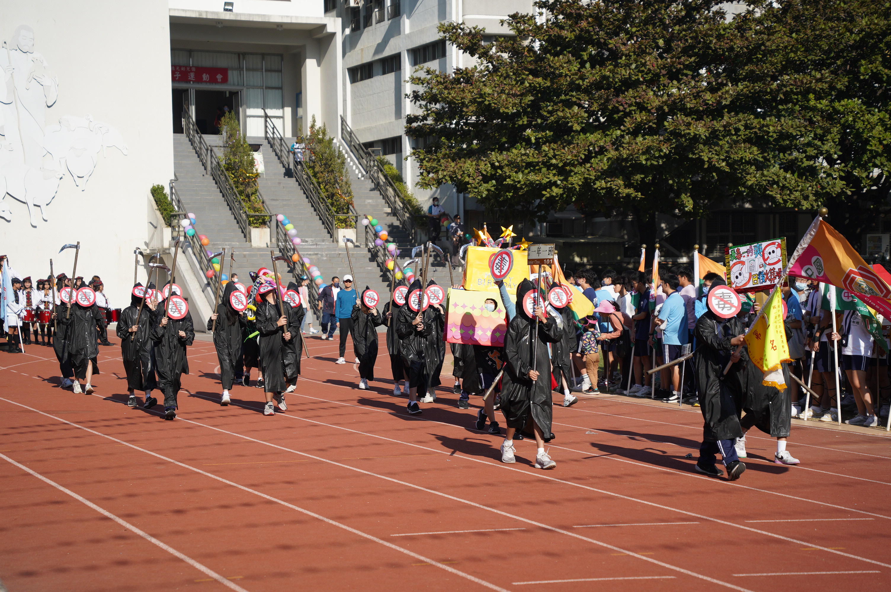 一、本校「60週年校慶第49屆運動大會」於12月8-9日隆重舉行,有別於以往,第一天舉辦活動以競賽類為主,包含趣味競賽(兩人三腳)、大隊接力及表演賽等,第二天除了教職員趣味競賽及各年級男生組1000公尺接力決賽外,為擴大慶祝節慶規模,安排一系列慶祝活動。開幕式由楊惠娜校長及王信義家長會長盛裝打扮帶領本校文教基金、愛心及志工團隊、校友會進場接受歡呼及表揚,緊接在後有班級創意進場、空軍官校軍樂隊及德高國小鼓術隊蒞校表演傳達「生日快樂」祝賀,後還有班聯糾察聯合熱舞及社團表演等,透過舞蹈、唱歌、服裝、裝置藝術等展現社團特色及呈現學校多元發展,後續登場的有管弦樂隊、鼓隊、儀隊標兵及校旗進場等,其後有象徵紀念性的植樹活動。下午首次安排了校園演唱會,群星聚集,深獲年輕學子青睞,活動現場氣氛相當熱烈,而參賽同學戮力表現,為所屬團隊增取佳績。