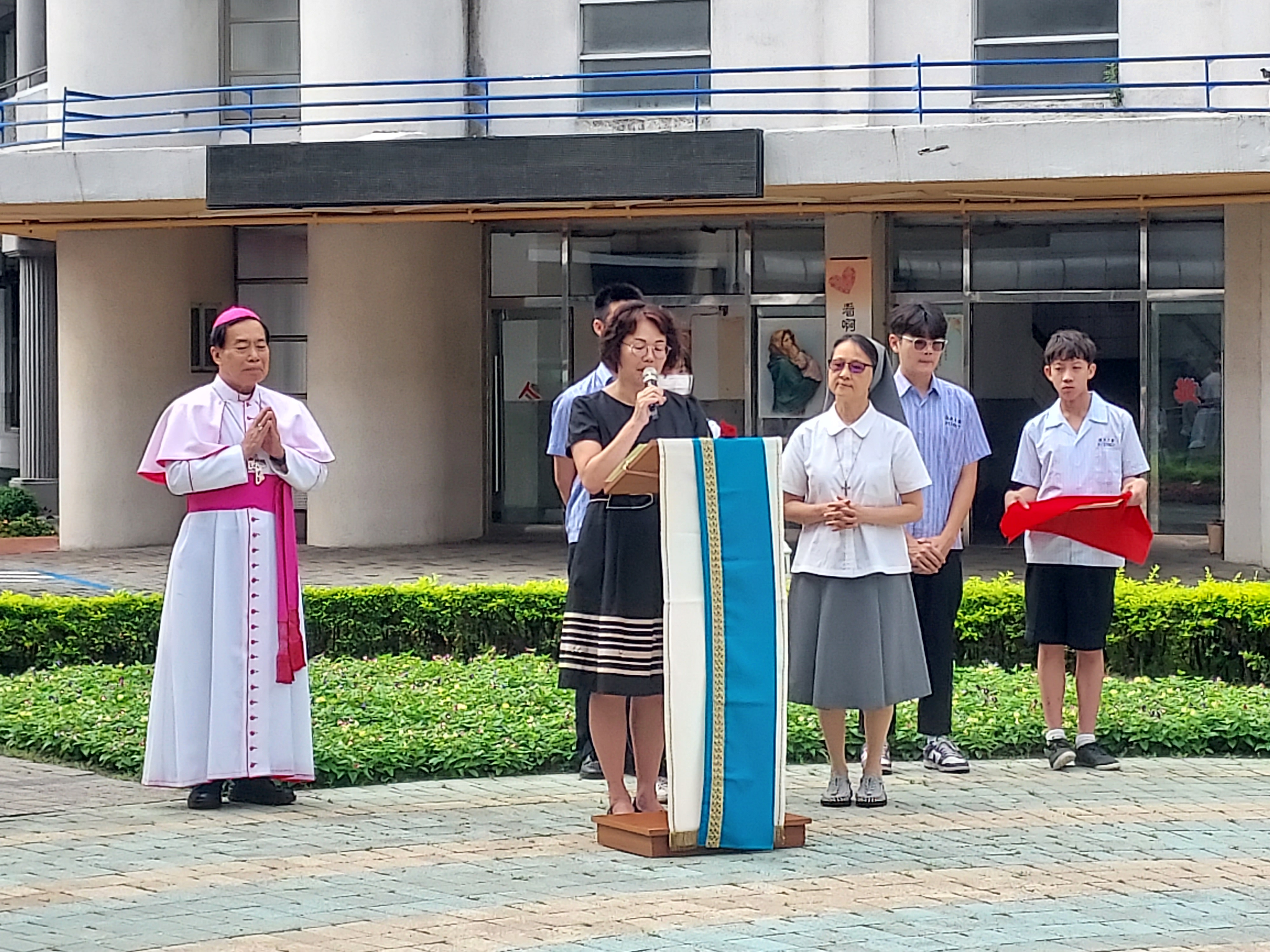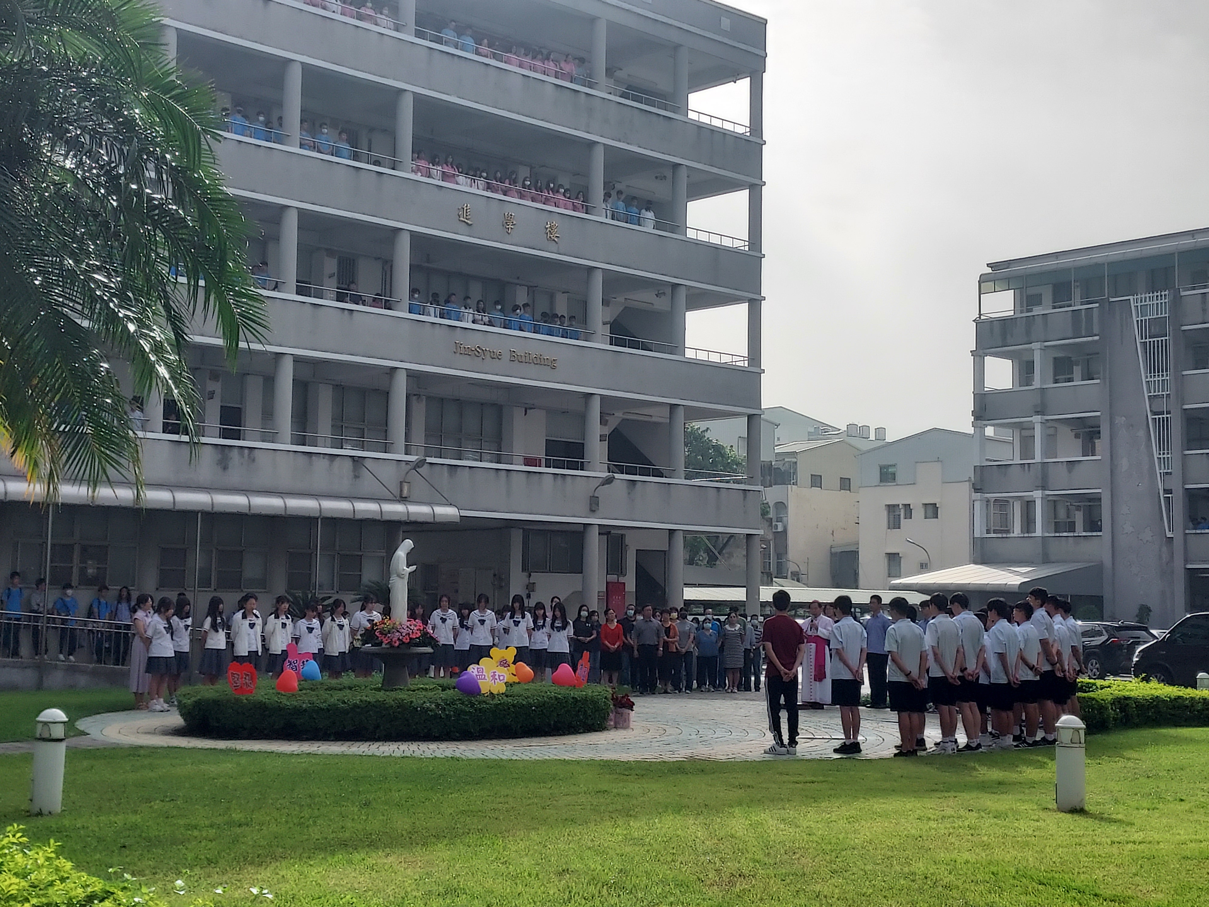 讚美感謝天主恩賜適合的天氣,今早全校師生齊聚聖母園,藉著聖母加冕及獻花,感謝聖母媽媽默默守護德光,感恩母親們辛勞照顧子女。