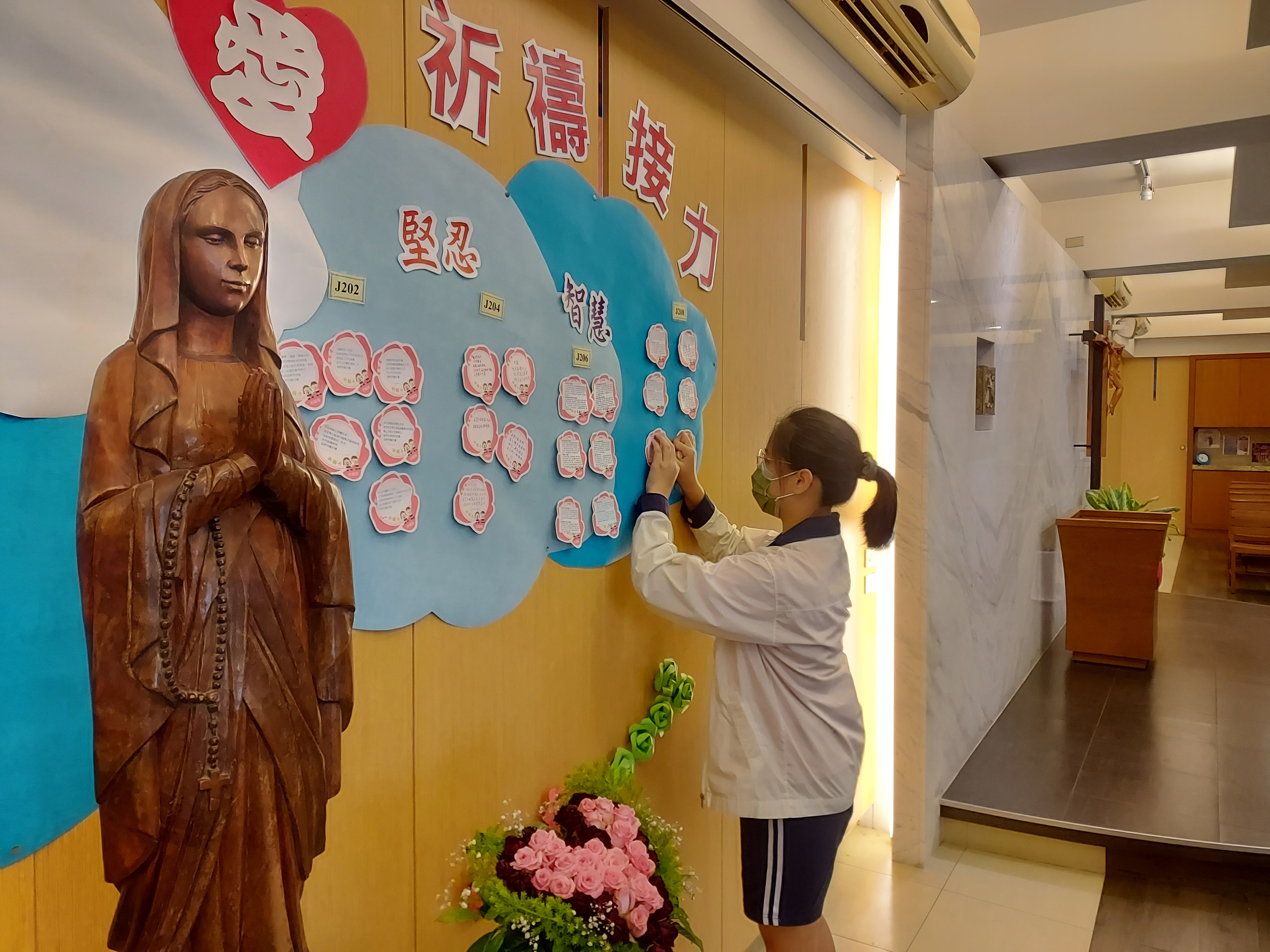 溫馨5月,國二班級代表關懷全校師生及世界需要!早上班級齊聚聖堂,將家事,國事,天下事一一述說,祈求聖母媽媽慈愛的轉求,及天主的俯聽!